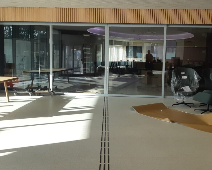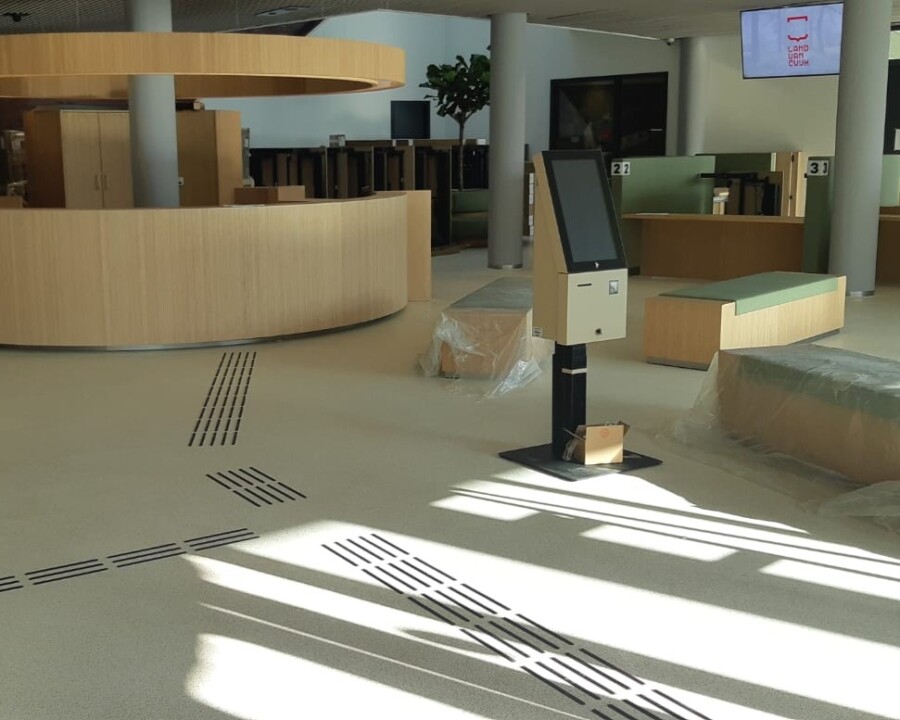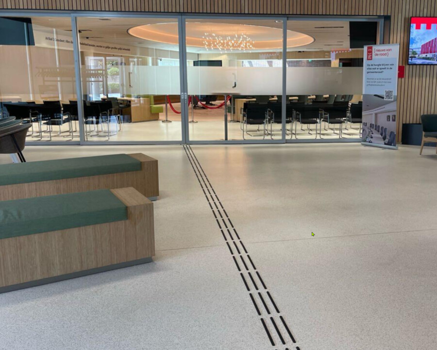 TG Lining zorgde voor een toegankelijke route in het vernieuwde gemeentehuis van Land van Cuijk voor mensen met een visuele beperking.