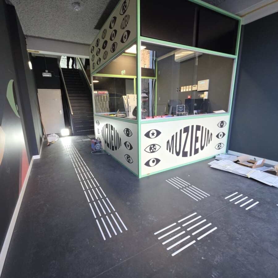 Toegankelijkheid zit niet in één aanpassing maar in het consequent doorvoeren ervan in elke keuze die je maakt. Het muZIEum is opnieuw ontworpen tot één doorlopende, zintuiglijke bezoekersroute met als belangrijk sluitstuk de geleidelijnen. En wat liggen ze strak!”