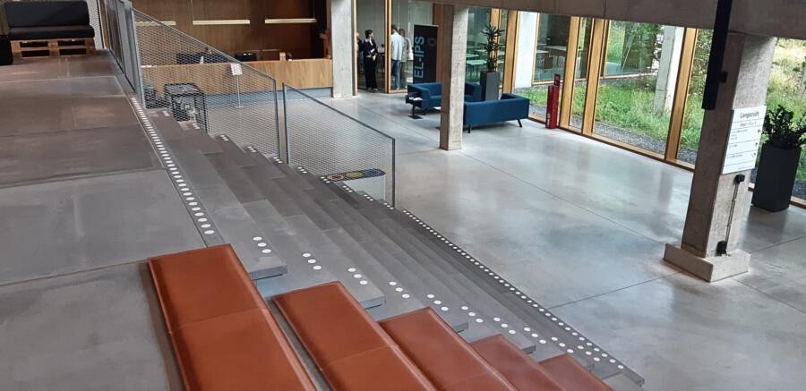 TG Lining heeft trapmarkeringen geplaatst in de onderwijsgebouwen Langezijds, Ravelijn en Hal B en een geleideroute aangebracht in gebouw Vrijhof van de Universiteit Twente.