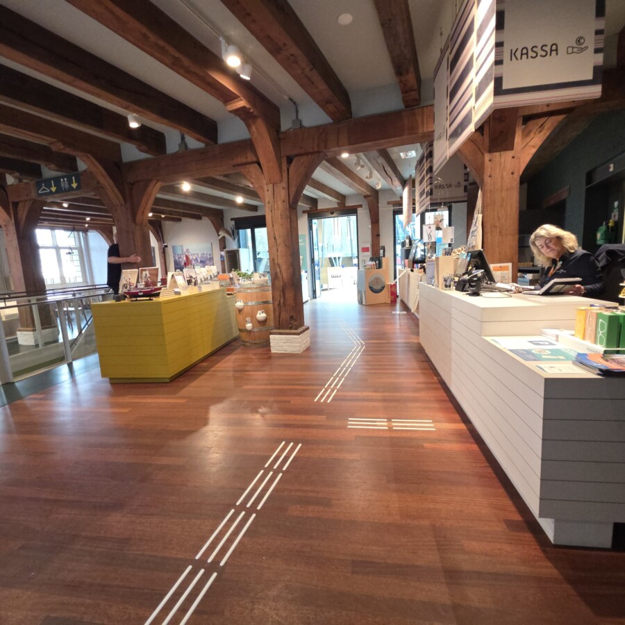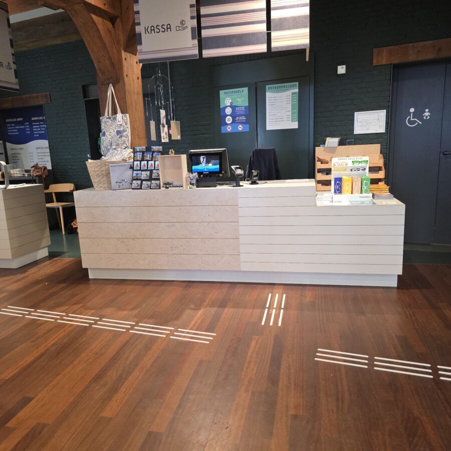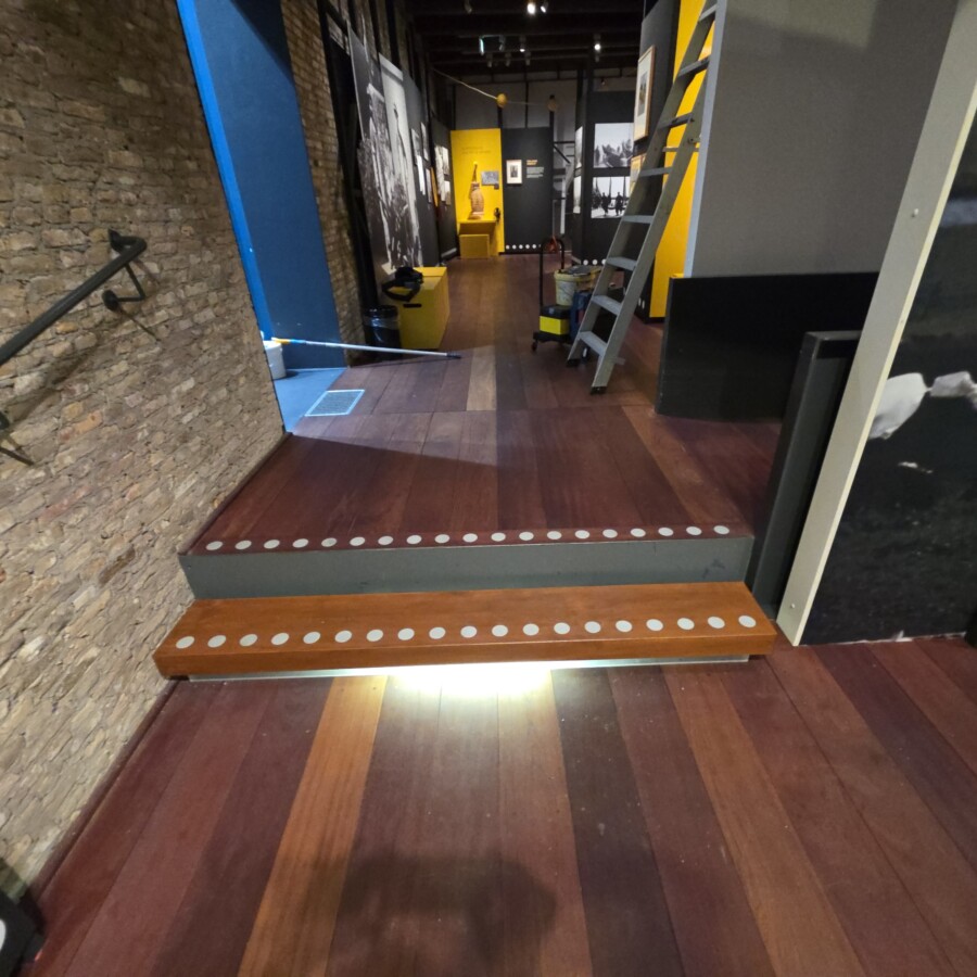 TG Lining heeft Blinkink trapmarkeringen en Blinkink geleidelijnen en waarschuwingsmarkeringen aangebracht in het Schathuys van het Zuiderzeemuseum.